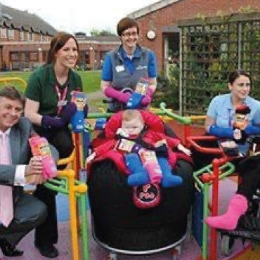 Circa 2013; David Doughty donating Heat Holders to Rainbows Children’s Hospice.